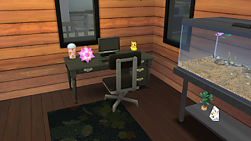 Two different fish tanks, one with a rustic wooden base and a second with a more basic maxis match-ish wooden more...
