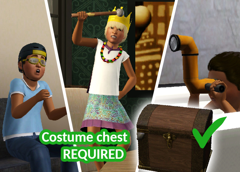 This is a small scripting mod that replaces the following interactions with custom ones that now require a costume chest on your lot: