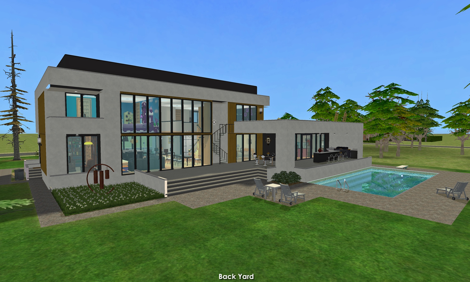 I intentionally keep my builds lightly furnished - with only EAxis stuffeths - so that you can have all the fun of decorating it! (Please CC-it-up once you get it in your game!) All appliances, plumbing and lighting are included; along with smoke and burglar alarms, and telephones.