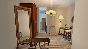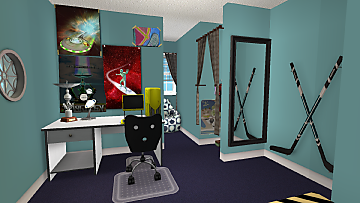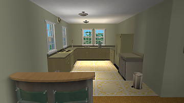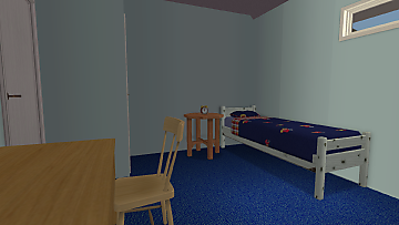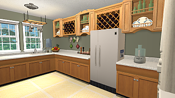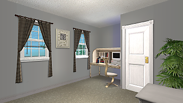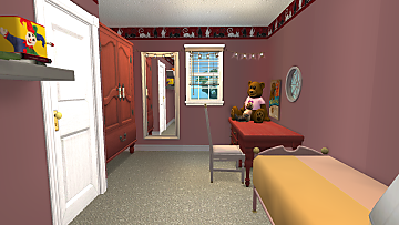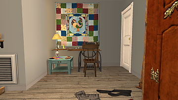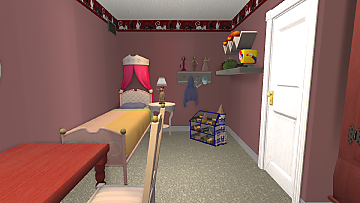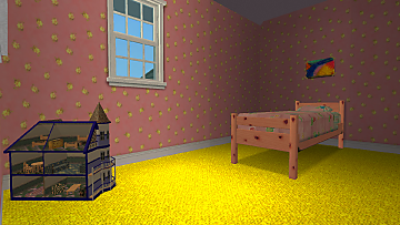 There is a slight flaw from my side in this house: I forgot to delete the dollhouse in the girl's room. So one is piercing through the ceiling in kitchen and it's hidden in her desk. Sorry! 😂
