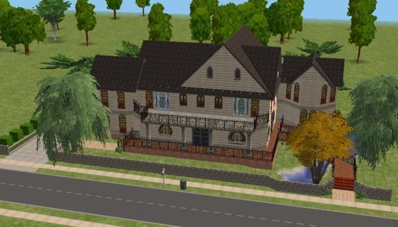 I made the basement and stairs using Mike Inside's tutorials. It costs 81,218 simoleans. It has four bedrooms, three baths, and two towers.