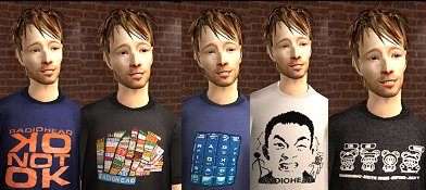 This is another part of my attempt to make some band shirts for sims. These shirts are for the British band Radiohead, who have released the albums 'Pablo Honey', 'The Bends', 'Ok Computer', 'Kid A', 'Amnesiac', and 'Hail to the Thief'.