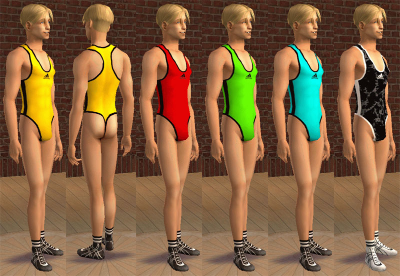 Sexy athletic spandex. It makes me think of wrestling, hence the name. The number 2 is because it's a recolor of an outfit that I downloaded from somewhere, but I forget where, and by whom it was created. If somebody can help me? I'd love to give the original author credit. The original outfit went down to about halfway the upper legs.