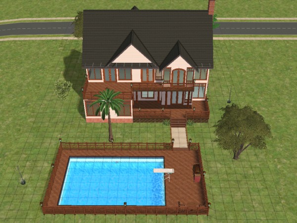 the pool isnt rasied that much... but its still raised! lol. no c.c.. no recolors... availible for original game and no EP's