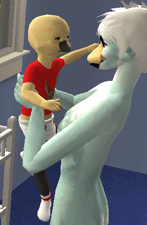I Figured I would share a creation of mine, As of late I have be making alot of animal like sims. Infact my town is full of critters. Of course they are in the first stages but interesting. So here is one of them. :Moose:<P>Whimsy The Swan Sim<P>this includes custom swan skin that starts out yellow as a baby and changes to greyish as a child then to white for teen to elder, custom face paint for bill I included the child version in the rar as well(new born and toddler do not need face paint), custom hair (and crappy at that), and of course Whimsy. No meshes needed fill has only maxis orginal clothes and maxis eyes. <P>As Noted in the title this is indeed a work in progress. I am still trying to figure out meshing so I can create things like flipper like feet, wing like arms, and a tail. will touch up skins in the future.....