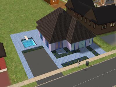 This is single storey starter home is built on a 2x2 lot and costs $18,627. It comes complete with a pool including both a diving board and the essential pool ladder (I don’t want you Sims suffering any unfortunate accidents!