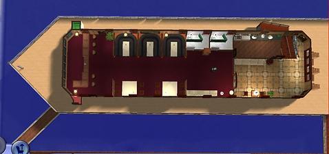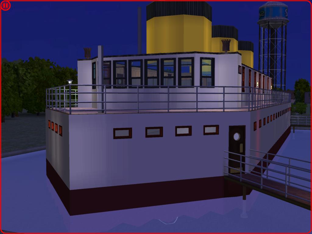 S/S Fergussa is a ship loosely based on the luxurious steamers of the 30's. In this community lot, your Sims will be able to dine, relax, shop, dance, and even take a bath inside this old-styled ship!