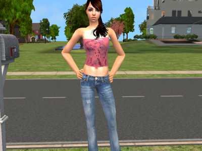 This is a pink top for adult females with detail on the front. It should work with all versions of the game.