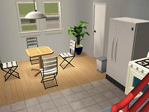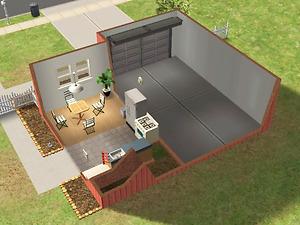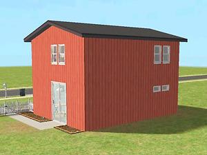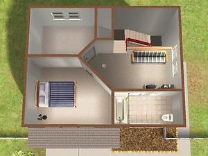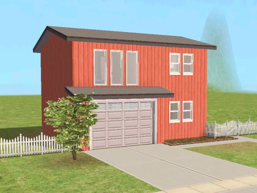 Two-story starter house, furnished for 1-2 sims, with spare room and garage. Some landscaping/decoration.
