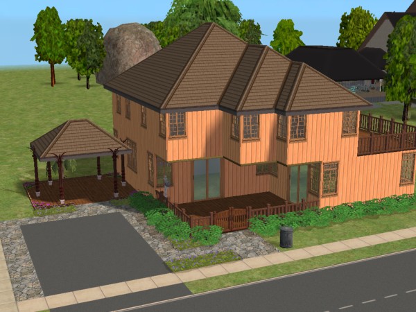 I tried to keep the use of extras (like lots of trees to make it look like the woods) to a minimum so as to keep the overall file size low. As well, I tried in as many places as I could to use Maxis building materials. However, I did use some custom content as follows: