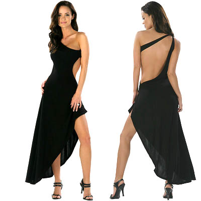 Slinky Black Cut-out Evening Gown "Radiance Askew"