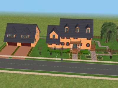 This house has a 1st floor Master Bedroom Suite with walk-in closet and master bath..There is also a large living room - dining room combo. A kitcheb with a breakfast nook and a utility room off the kitchen .There is also the half bath on the first floor by the front entry...Upstairs there is a sitting area at the top of the stairs with an open area to the foyer below.There is 1 large bedroom with walk in closet and 1 smaller bedroom..There is also a full bath plus 2 bonus rooms..I also built a 2 car garage with room for expansion above that (maybe an inlaw place) ...Almost the entire house is oak hardwood floors with the exception of the baths, kitchen, closets and 1 bonus room..The house is also sided in diagonal wood siding ..There is lots of landscaping done outside also..The only thing is i did not put any lights anywhere inside the buildings that leaves it open for your personal touch !!!...The only rooms furnished are the kitchen and bathrooms with maxis stuff of course ...