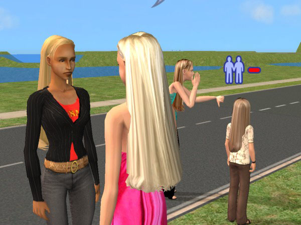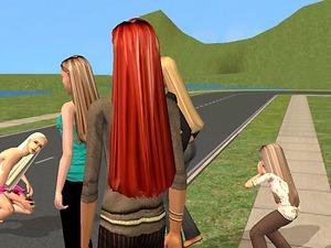 Below are 5 different hair colors: Dirty blond, Maxis blond, red, black, and platinum. They all look the same for teens and adults, but the child is somewhat different. That's because I haven't learned how to import adult hairstyles to kids (like Melodie9) actually, if someone could tell me how, that would be very appreciated! :B There are 6 images but 5 colors. The child is just the dirtyblond version. Well here they are! Enjoy!