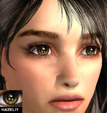 Here are some eyes with more light reflections in them. They come in eight colors and I made two sets--one set of originals and another set made into contacts so that you can click on a Mirror and then Makeup and then change your sim's eye color if you want to.