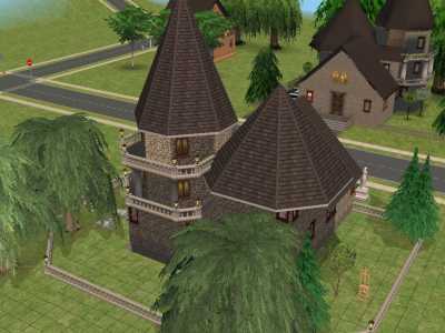 It's a lovely gothic villa, 3x3, 92000 simoleon. It comes with a large living room, a medium kitchen and a bathroom on the groundfloor, a comfortable bedroom and a study corner on the first floor.