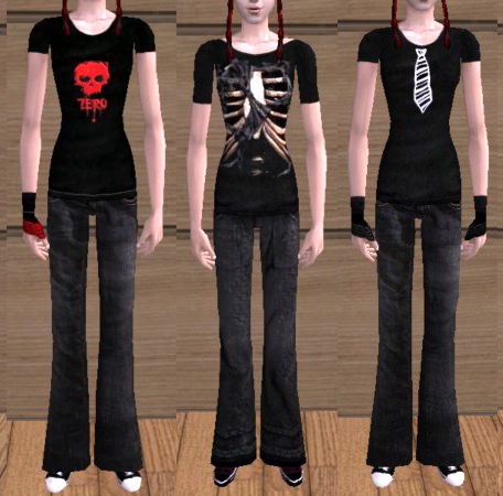 Here I have uploaded 3 punk outfits for everyday females . Mesh needed by parsimonious (http://www.parsimonious.org/fashion2/meshes.shtml) (mesh is called mesh_k8parsftpbaggypj041405-temptexture )