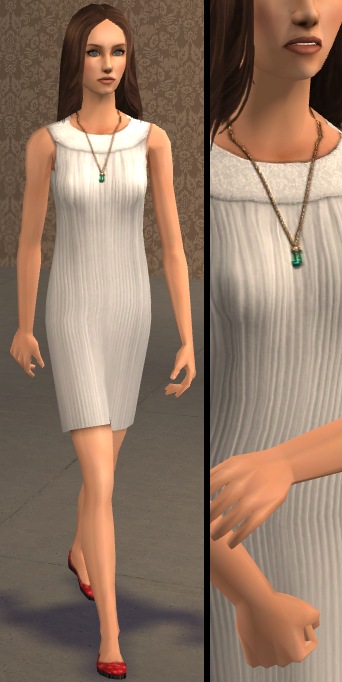 I have another version (without the necklace and with black stockings) of this dress on my site. This version is a little more summery (is that even a word? :S)