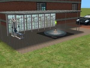 The landscape is all made with concrete. There is one driveway and a small sport room with an exercise machine and a hot tub.