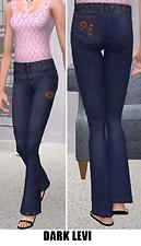 So, the two Levi jeans versions have embroidery on a back pocket I added on the left side, around the belt loops, on the lower right leg and on the upper left leg to the side. The third pair of jeans are simply Maxis jeans run through the texturizer.