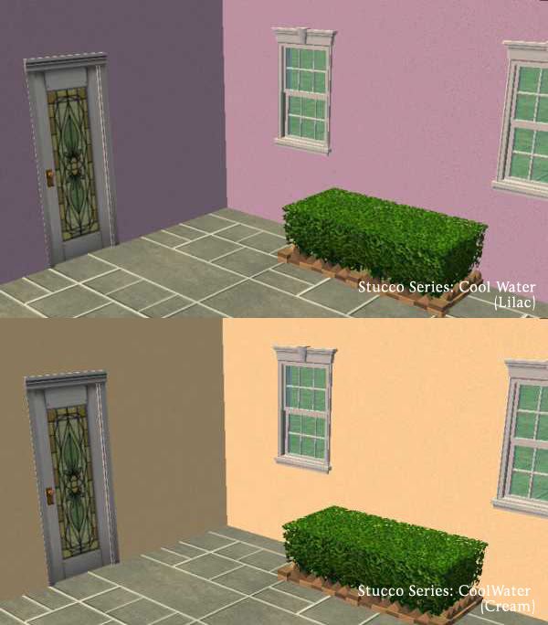 This set of exterior stucco walls are wrapped in the sweet colors of spring. They come both plain and with a brick detail to add a little gentleness to your homes!