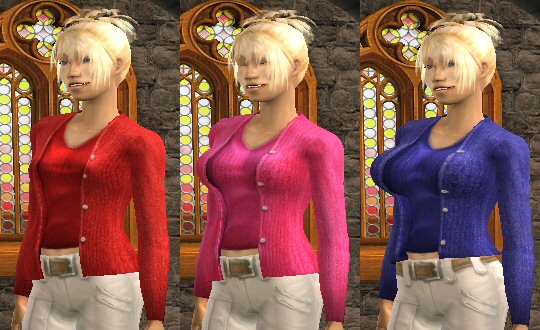 Not all size/color combinations are shown, but all sizes from 34A to 36DDDenh are present for each sweater. I only did the ones that Warlokk had not already included in his top seperates sets. Do whatever you want with these, but don't upload to any paysites, mostly because these are all Maxis textures at their core.