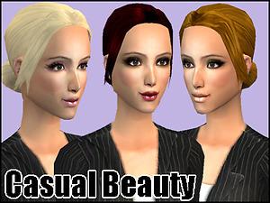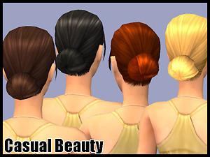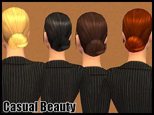 Sick of all the huge, extravagant, complicated haircuts? Well, I am. That's why I made this Casual Beauty hairmesh. A basic haircut for your sims. It's a bun with bangs as you can see :D.