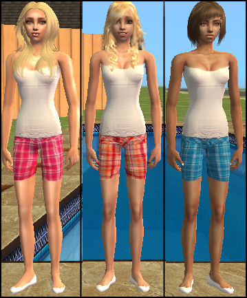 Plaid Halter Top with Denim Shorts (Warlokk Meshes)