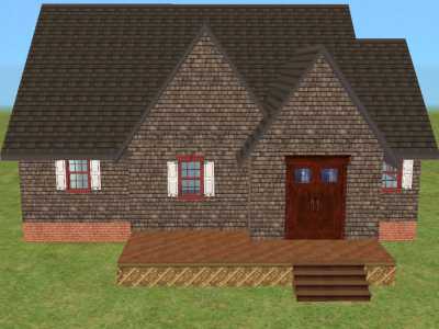 Today I bring you "The Jewel," a 1930s "Americanized English"-style cottage. The plan is small but efficient, and leaves plenty of room for growing Sim families. An entryway leads into a livingroom, which flows into the dining room. From the dining room one can enter a back hall, off of which are two large bedrooms and a bathroom. The diningroom also has a door to the kitchen, and off the kitchen is a staircase to the basement with one of those scary, clunky furnaces that are always making odd noises. This house comes sparsely furnished and has no landscaping (it is a starter, after all).