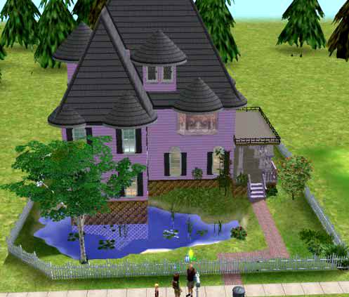 The typical old style dream house with the roof gables and the white picket fence. Complete with a small pond in the front yard, nicely landscaped with a brick walkway.