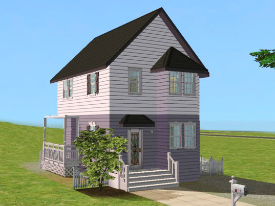 Starter house on a 1x3 lot, furnished for 1-2 sims with a spare room. Empty garden, minimal landscaping, room for a driveway in front of the house.