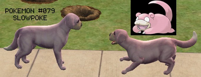 Slowpoke is a large-sized dog & comes in 2 colors: The pink seen on regular Slowpokes, & the purple-tint seen on their shiny counterpart.