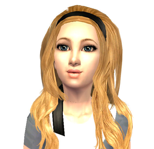 Her hair is an edit of kyriaw's edit of XMsims mesh 39 on page 54. The texture and most of the alpha is hers... I just removed the bangs and shortened the hairband. For the hair, you'll need to download the mesh here.
