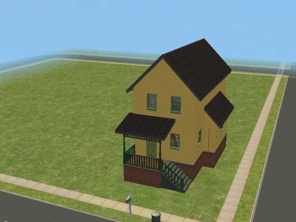 This is the 'yellow' house on Rainbow Street (d'ya notice the way they are going in the order of the rainbow? Pink is next :P) It is a lovely house furnished for 1-3 sims. Perfect for a growing family. The yard is pretty much empty so there is room for a veg plot if you have seasons and you might be able to fit a sideways driveway in the back yard... I haven't tried it.