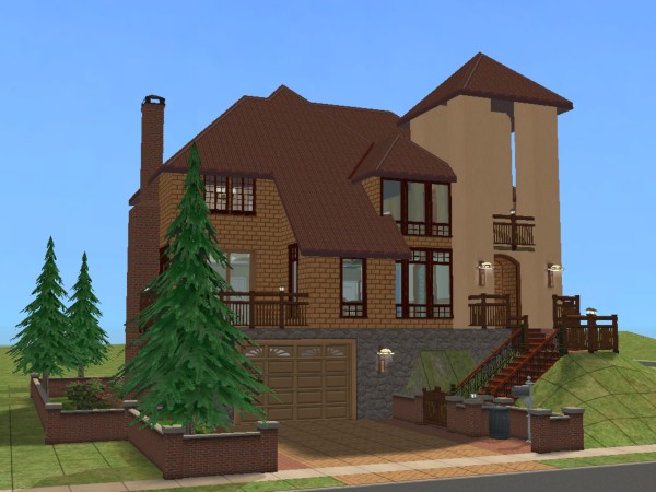 It's originally designed for one middle-sim-class family. You'll get a large living room, comfy dining room, a kitchen in between, and 4 bathrooms. There's enough space upstairs for children's bedrooms, grandma&grampa or hobbies such as a private gym or personal bibliotheque (That's why there's a second fireplace.) Of course those are recommondations, the lot comes unfurnished except for bathrooms and decorating furniture.