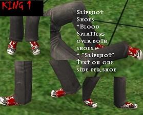 The part of this outfit which took the longest was the shoes; they have blood splatters all over them with “Slipknot” written on one side per shoe. I tried my best to take good photos of the shoes but the jeans kept getting in the way so the images of them I have may not be the best. The shoes do look heaps better in-game if you look at them on the right angle.