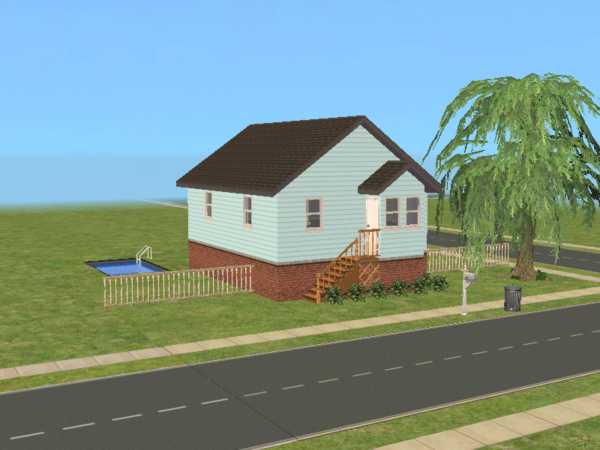 This is the 'blue' house on Rainbow Street. It is a lovely house furnished for 1-2 sims. Perfect for a young couple. The yard is pretty much empty so you can expand the house if needed or you could add a veg patch or set up a small home business. This house is full of potential.