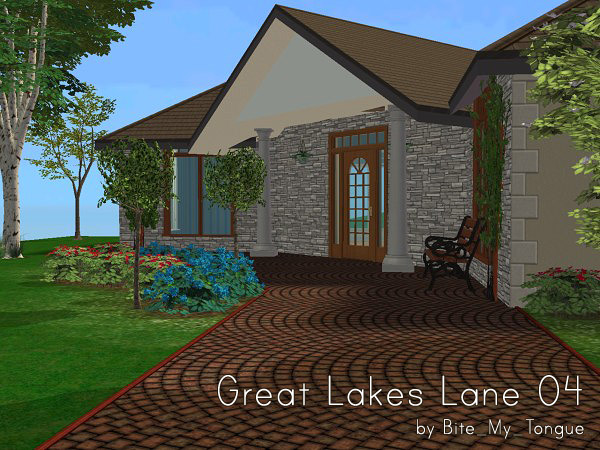 This is a one-storey house inspired by a real houseplan. It isn't big, but it's spacious enough and has a fair sized courtyard. The house costs $14,721 and is built on 2x2 lot. Great Lakes Lane 04 is perfect home for your sim families who love comfort and homey feeling. (: