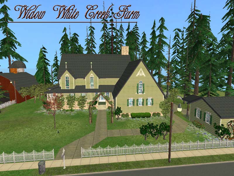 This house was inspired by a farmhouse near where I go walking every day, and named after the neighborhood creek. This is a 5 bedroom 5 bath farmhouse, which includes a nearby guest cottage on the property. The barn is a converted garage to store your Sim's favorite auto. An arched bridge leads to a small island. Garden space and orchard are already set up for you. ~Enjoy!