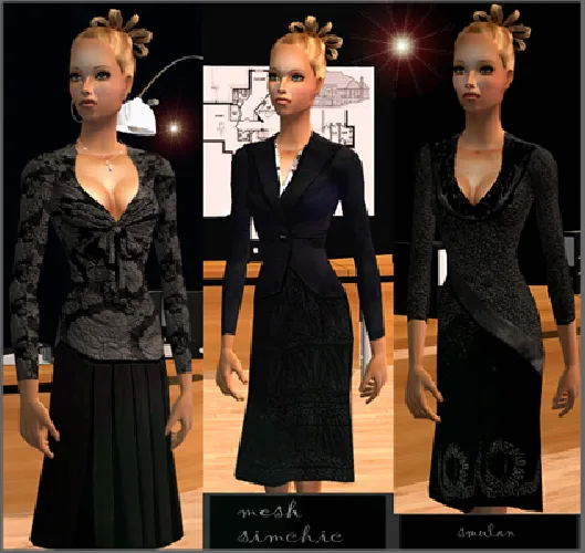 See pictures attached below for having a closer look at the dresses held in blue, gold and black.