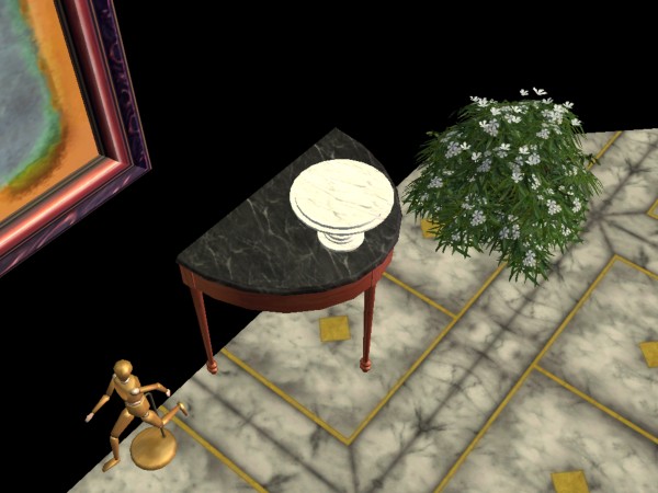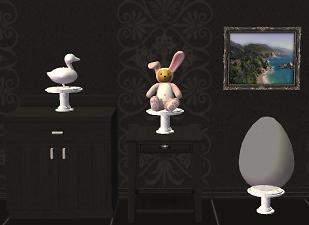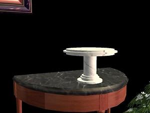 I have for you today a decorative item. This is a small, round pedestal for your Sim's treasured sculptures. It fits on most surfaces or floor, except the OFB display shelves and AL 'Knock on Wood' shelves, because of it's other attributes. It's improved texture is from a real marble sample obtained from the internet.