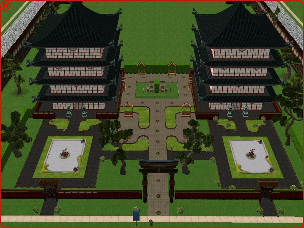 Anyway, to begin, I'm working on a custom Eastern Vacation area for my sims, and decided to share with you a few of the lots. So far I've completed a spa, a vacation home, and this beautiful shrine, dedicated to the Eastern Sim Goddess Tsukika (it has to be a shrine to something after all!).
