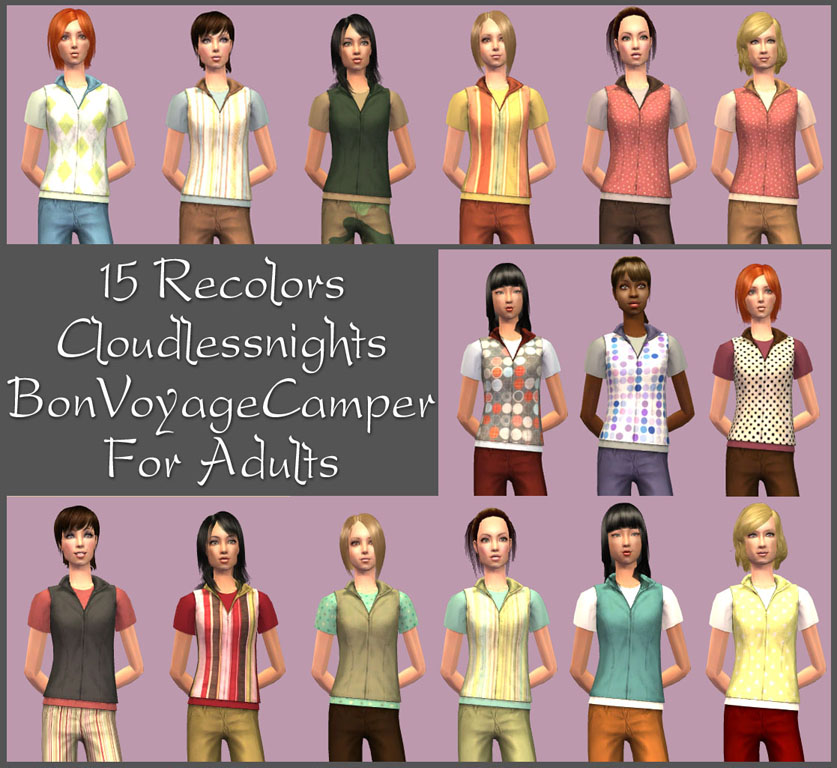 15 Recolors of Cloudlessnights Bon Voyage Camper outfit for Adults