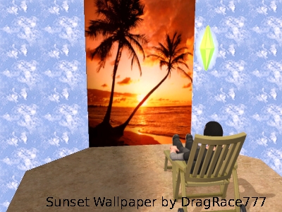 I have another cool wallpaper good for a tropical house. This is a two sectioned wallpaper of a tropical sunset. Both sections are numbered in the name. This is great for tight spaces when you can't think of what to put there or just a giant poster on your wall. Either way, your sims will enjoy this relaxing view. Besides, you don't have to travel to Hawaii just for the view!