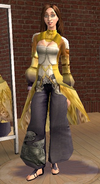 Sarah's outfit was created in Milkshape by modifying a Maxis mesh from the original game. There should not be any compatibility issues.