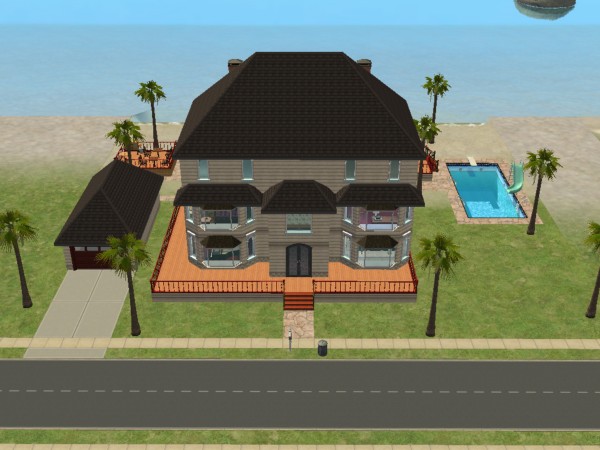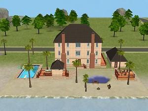 This beautiful three story beach home has everything a large family could need. There are 4 bedrooms and 6 bathrooms. The den and the master bedroom both have a private bathroom with a fireplace for those cold nights. Decorated in a traditional style the wallpaper and carpet will make your sims really feel their life of luxury. The dining room and spacious living room both have a fireplace as well for a romantic evening with a loved one or a gentle cuddle on the couch.
