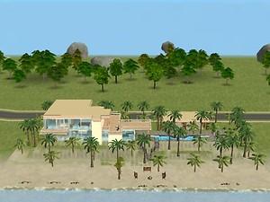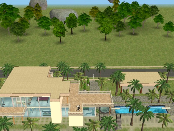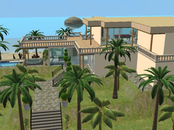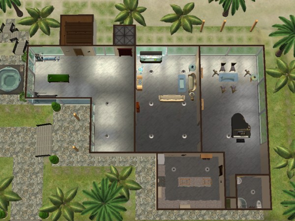 Next to the villa you have a swimming pool and jacuzzi. The design of the villa is contemporary reminiscent of the villas in Phuket, Thailand. Priced for those Sims who have exceeded well beyond what one can expect in a single life. This home will be a sure hit with your bachelor loving Sim as the grounds have plenty of palm and banana trees. Floors are in white marble and the walls are painted in beach white.