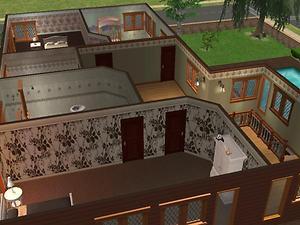 This home is minimally furnished with Maxis furnishings, but has some lovely custom walls and floors from Parsimonious and Komosims, as well as a cute ottomon from Delphine. This is a spacious home with room for entertaining and fun.