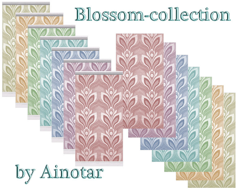 I proudly present, Blossom-collection! Wallpaper comes in 7 beautiful colours and with or without laths. Laths are from Maxis own wallpapers.