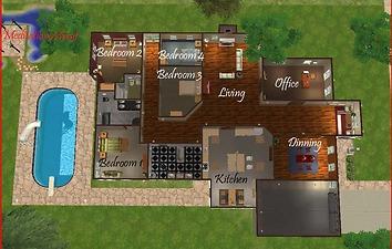 This lot is called Harmony because the goal was to create a natural flow in a simple and warm way. Fully furnished but still some details to fill out like curtains and art; 4 bedroom, 3 bath costing just over 146k. Harmony also has a garage with entrance from kitchen, pool and quiet reflection area in the back yard. Harmony is hack free and has very minimal custom content (3 pretty plants by Parsimonious).