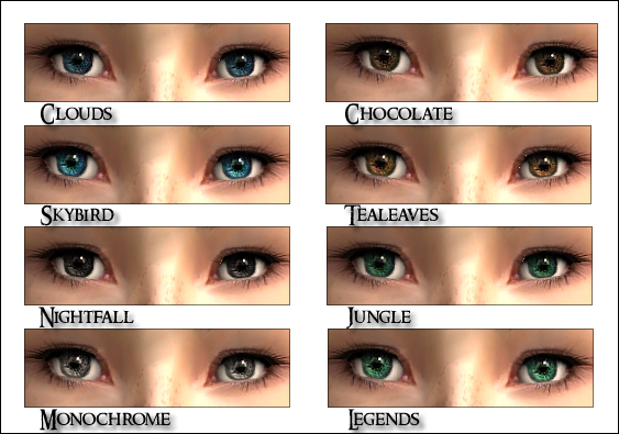 I've defaulted all 8 eyes so you will have two options to choose from for your Brown, Green and Gray defaults.